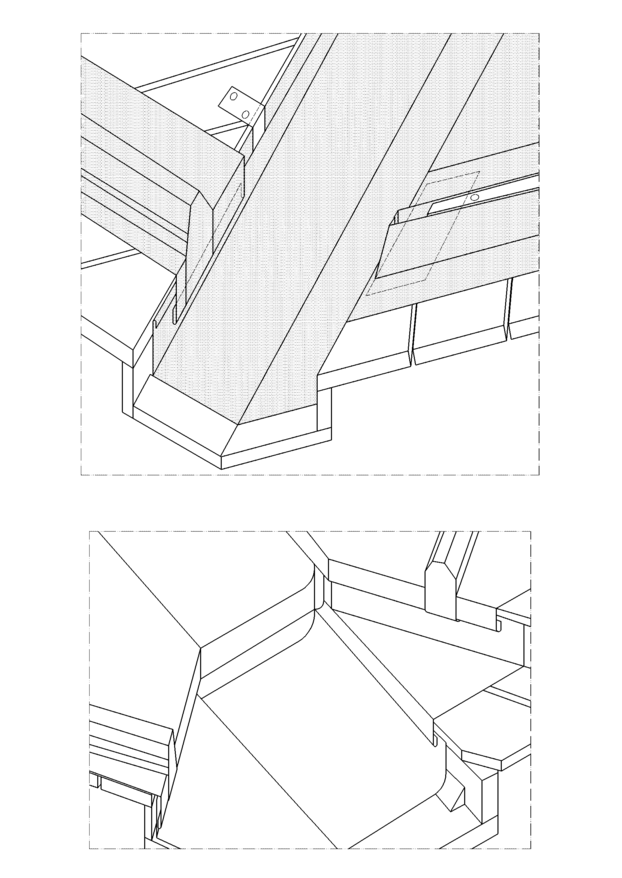 Figure 108 Couverture plane ou cintrée avec faîtage sur comble perdu