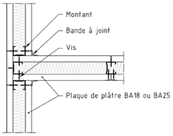 Le traitement de la jonction entre plaque de plâtre et éléments de nature différente peut être également assuré par l'une des dispositions suivantes :